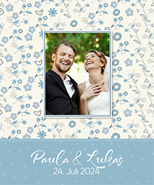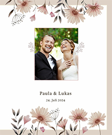 Umschlag bedruckt mit Bild und WunschzeilenHardcover mit wattierter Buchdecke100 weisse Seiten InhaltLesezeichenband in weiß